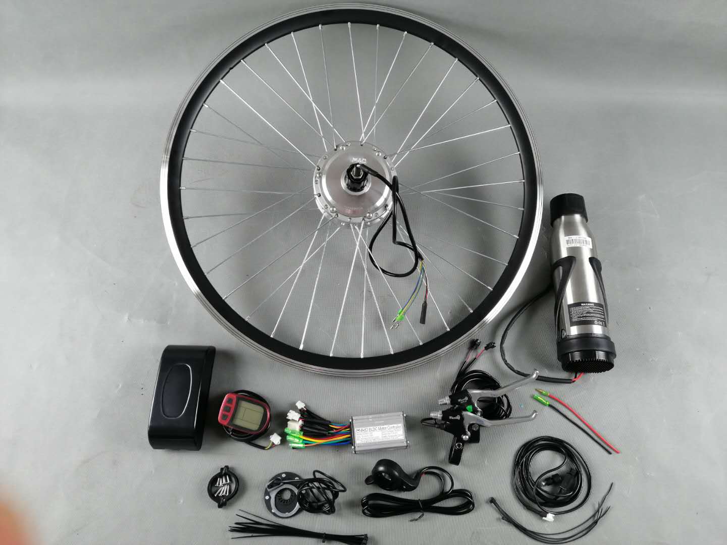 · Ebike Conversion Kit includes all necessary components for installation; the wheel hub motor, controller, display, throttle, brake levers, pedal-assist system, torque arm, and cable ties. Please, note that in this Electric Bike Kit, BATTERY & TIRE ARE NOT INCLUDED!